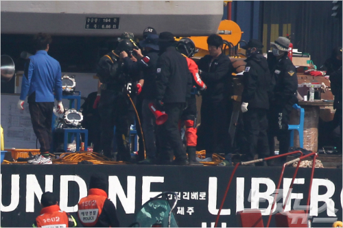 현재 수색에서, 배 앞머리는 해경과 민간팀이, 배 뒷부분은 해군이 나눠서 맡고 있다.