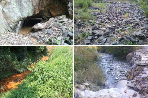 (왼쪽부터 시계방향) 충북 보은 부국탄광의 폐갱구, 충남 보령 덕수-덕흥탄광의 폐석 적치장, 전남 완주 대덕탄광 인근 하천의 적화현상, 전남 화순 호남광업탄광 인근 하천의 백화 현상 (사진=환경부 제공)