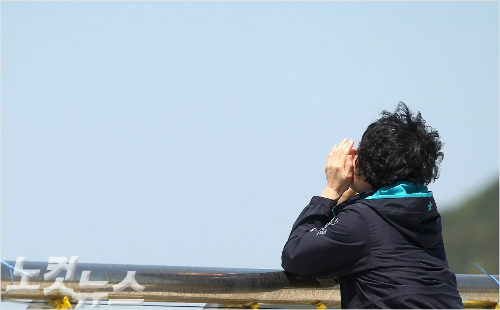 6일 오전 진도항 등대에서 실종자 가족이 아이의 이름을 외치고 있다. (윤성호 기자/자료사진)