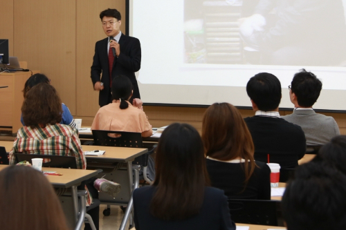 박태현 대표가 지난해 10월 경희사이버대학교에서 커리어 스쿨 특강을 진행하고 있다.