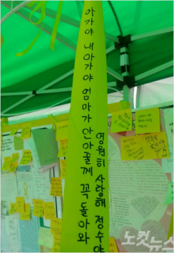 "남들은 무능한 정부가 원망스럽다고 하지만 나는 딸을 지키지 못한 내 자신이 너무나도 죄스럽고 원망스럽다"는 김 씨는 컴컴하고 차가운 바다에서 엄마를 애타게 찾았을 딸에게 미안하고 또 미안하기만 하다.