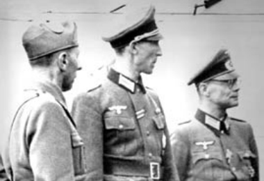 유고슬라비아의 포드고리카 비행장 활주로에 서있는 나치 장교복 차림의 쿠르트 발트하임 전 유엔 사무총장(가운데).