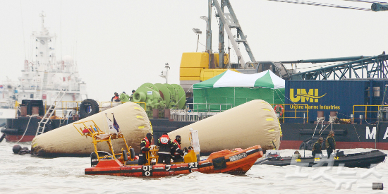 지난 주말에는 풍랑주의보가 내려지는 등 거센 비바람이 몰아쳐 수중 수색작업이 중단됐습니다.