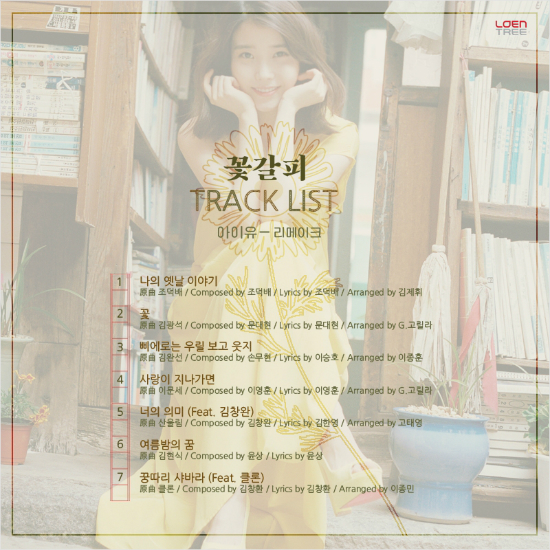아이유의 리메이크앨범 트랙리스트가 공개됐다.