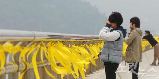여객선 '세월호' 침몰 사고 17일째인 2일 오전 전남 진도항에서 실종자 가족들이 안개 낀 바다를 바라보며 눈물을 흘리고 있다. (사진=윤성호 기자)
