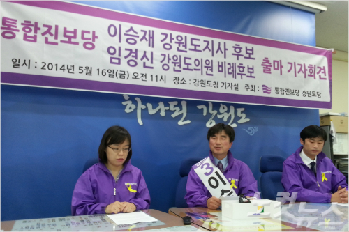 통합진보당 강원도당이 새누리, 새정치민주연합 양자 대결 구도에 도전장을 냈다. 도당은 16일 강원도청 기자실에서 지방선거 출마자 기자회견을 열고 선거운동에 돌입했다.