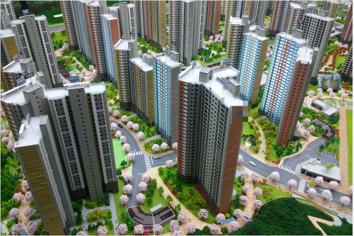 아파트 분양을 위한 견본주택에는 완공된 실제 아파트 단지를 압축해놓은 듯한 정교한 단지 모형이 전시된다.