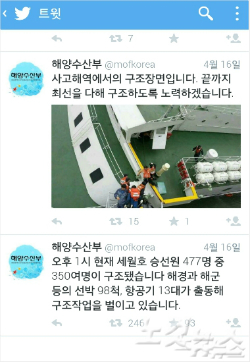구조에서 허둥지둥했던 정부가 트위터에선 일사분란하게 정부활동 홍보에 열을 올렸다고 합니다.