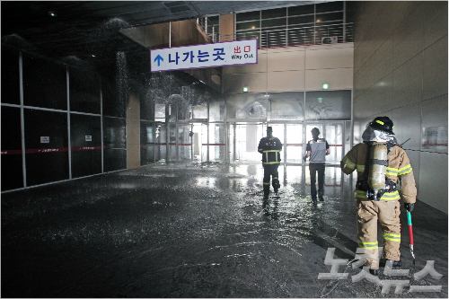 26일 오전 9시 1분쯤 경기도 고양시 일산동구 백석동 고양시외종합터미널 내 지하 1층 CJ푸드빌 공사현장에서 화재가 발생한 가운데 사고현장에서 소방대원들이 분주한 모습을 보이고 있다. 이번 화재로 사망자 7명과 부상자 24명이 발생했다. 윤성호기자