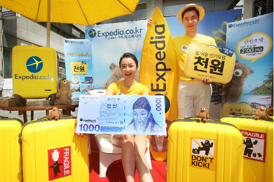 글로벌 온라인 여행사 익스피디아(www.expedia.co.kr)가 27일 서울 종로구 관철동 젊음의 거리에서 '천원 호텔' 프로모션을 알리기 위해 사진 행사와 고객 참여 이벤트를 진행했다고 밝혔다.