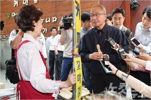 현오석 부총리 겸 기획재정부 장관이 29일 오전 남대문시장을 방문해 상인과 대화하고 있다. (기획재정부 제공/노컷뉴스)