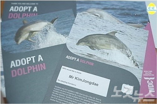 그룹 EXO 멤버 '첸(본명 김종대)'을 위해 중국팬이 입양한 돌고래 입양 확인서 (출처: EXO 네이버 팬카페 'EXO TERIC')