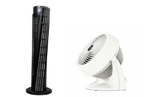 보네이도의 타워형 공기순환기 143(왼쪽)과 보네이도 633 린넨 화이트.