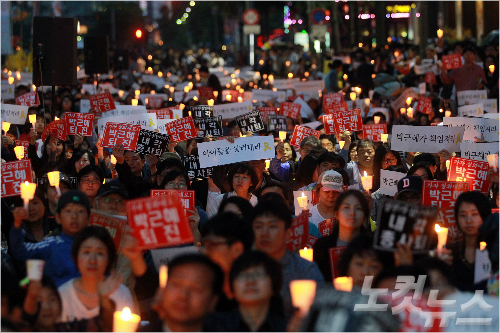 개신교계 대표적 보수적 교단인 예장통합총회와 합동총회 소속 목회자들도 세월호 참사 진상규명 활동에 나섰다. 사진은 지난 10일 오후 청계광장에서 열린 세월호 침몰사고 희생자들을 추모하는 촛불집회 모습. 윤창원기자