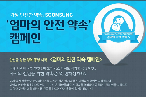 엄마의 안전 약속 캠페인은 '안전을 향한 행복 동행 시작'이라는 주제로 아이의 안전을 지키기 위한 엄마의 굳은 다짐과 실천을 담은 '엄마의 안전 약속 5'를 전파하고 이를 통해 생활 속에서도 캠페인 메시지를 실천할 수 있도록 하는데 목적을 두고 있다.