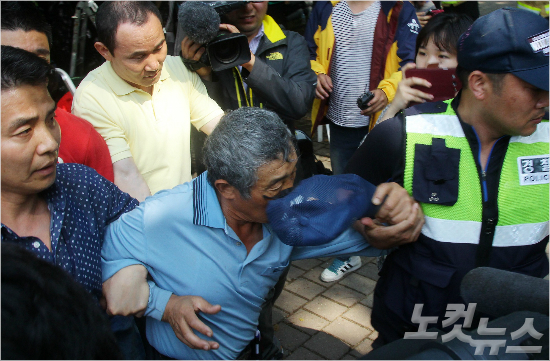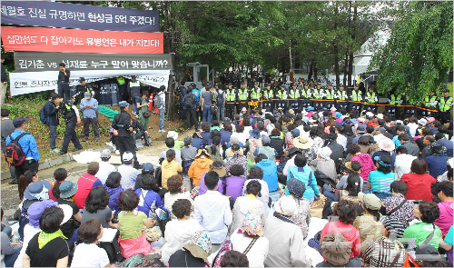 금수원에 대한 압수수색이 실시된 11일 오전 경기도 안성시 보개면 금수원 정문 앞에 금수원 내로 진입하지 못한 구원파 신도들이 모여 있다. (박종민 기자)