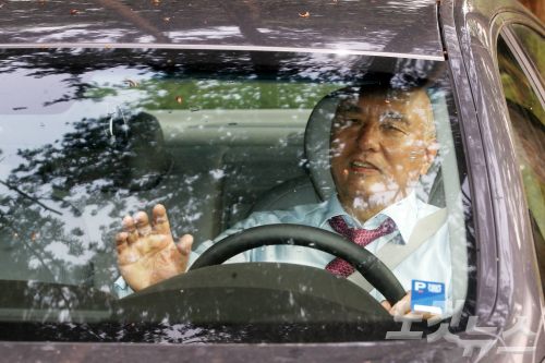 새 국무총리 후보로 지명된 문창극 전 중앙일보 주필이 10일 오후 자가운전으로 서울대학교를 나서고 있다. (사진=윤성호 기자)
