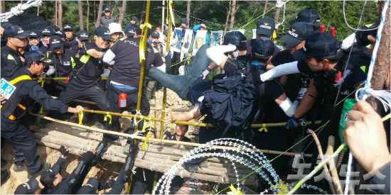 <밀양 농성장 철거…공사 본격화>밀양>▶ 어제 밀양 농성장 철거 행정대집행으로 한전이 본격적인 송전탑 공사에 들어갔습니다.