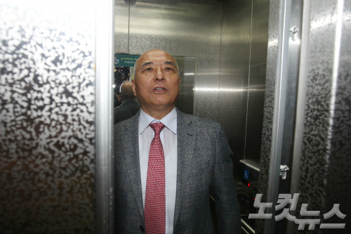 문창극 국무총리 후보자가 12일 오후 서울 종로구 정부종합청사 창성동 별관에서 외출을 마치고 승강기를 타고 집무실로 이동하고 있다. (사진=윤성호 기자)