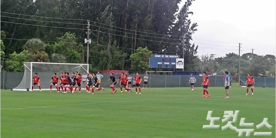 홍명보 감독은 미국 마이애미 전지훈련에 이어 브라질 캠프에서도 이틀간의 비공개훈련으로 선수들의 경기력 강화에 나선다. 마이애미=오해원기자