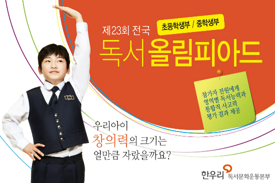 24년 전통의 사단법인 한우리독서문화운동본부(www.hanuribook.or.kr)가 어린이와 청소년의 독서논술 능력 향상을 위한 '제23회 전국 독서올림피아드(이하 독서올림피아드)'를 8월 23일 개최한다.