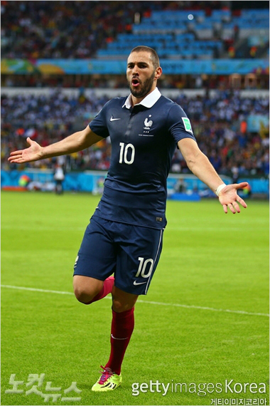 '준 해트트릭'을 기록하며 프랑스의 2014 브라질월드컵 첫 승을 이끈 카림 벤제마 (사진=ⓒGettyImages/멀티비츠 제공)