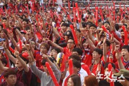 '2014 브라질 월드컵' H조 한국 대 러시아의 예선경기가 열리는 18일 오전 서울 세종로 광화문광장에 모인 시민들이 대한민국 축구대표팀의 선전을 기원하고 있다. (사진=윤성호 기자)