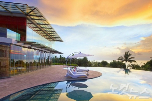 마지막으로 꾸따 비치 끝자락에 위치한 풀만 호텔은 모던한 스타일과 차분한 분위기로 허니무너에게 인기가 높은 리조트다. 옥상에 위치한 수영장은 꾸따 비치를 한눈에 내려다 보이는 전망을 갖추고 있으며 물이 낙수하는 듯한 묘한 느낌의 인테리어가 매력적이다.