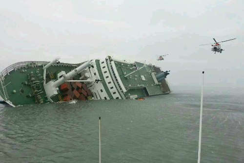 진도 인근해안에 침몰한 세월호 여객선 (사진=목포해경 제공)