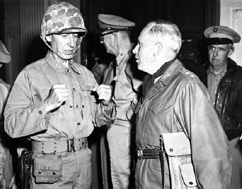 장진호 전투가 끝날 때까지 사사건건 대립한 스미스 해병1사단장(왼쪽)과 아놀드 10군단장. 스미스 장군의 고집이 해병대를 살렸다.