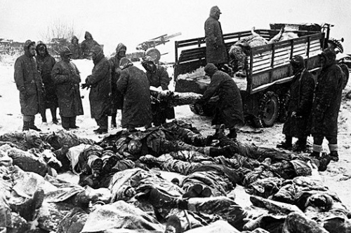 장진호 전투에서 전사한 미군들의 시신들. 전투보다는 동상으로 더 많이 죽었다.