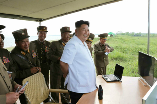 북한 김정은 제1비서가 유도탄 발사 현장을 참관한 모습(사진=노동신문)