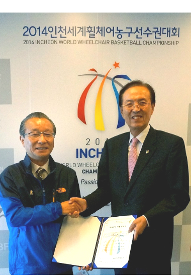 이날 협약식에서는 일성여자중고등학교 이선재 교장과 2014인천세계휠체어농구선수권대회조직위원회의 변효철 집행위원장, 이한조 사무총장 등이 참석했다.