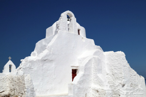 미코노스에서 무엇보다 눈여겨 봐야 할 것은 '파라포르티아니 교회(Paraportiani Church)'다. 미코노스에는 수백여개의 그리스 정교회 교당이 있는데 그중에서도 가장 잘 알려진 곳이 바로 이 파라포르티아니 교회다. 현지인에게는 '성모 마리아 파라포르티아니(Our Lady Paraportiani)'라는 애칭으로 불리며 신성하게 여겨지고 있다.