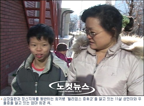 [BestNocut_L]올해로 11살이 된 김성민 군은 윌리엄스 증후군이라는 특이한 병을 가지고 있다. 윌리엄스 증후군은 2만 명에 1명꼴로 나타는 희귀병으로 심장질환과 정신지체를 동반하는 병.