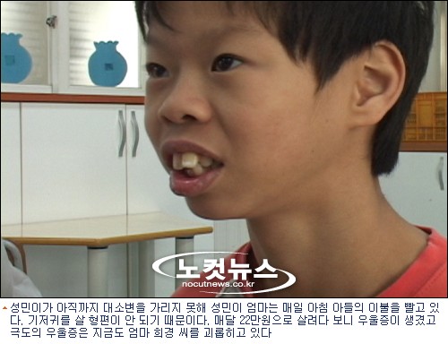 [희귀병을 앓는 아들과 우울증에 시달리는 엄마]▲ 극심한 우울증에 시달리는 엄마 하지만 성민이의 엄마 희경 씨를 더욱 힘들게 하는 것은 이 모든 어려움을 혼자 감당해야 한다는 사실이다. 4년 전, 남편과 사별한 후 성민이 뒷바라지는 물론 가족의 생계를 책임져야 했기 때문이다.