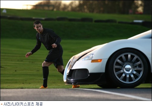 잉글랜드 프리미어리그 득점 선두를 달리고 있는 세계 최정상급 선수 크리스티아누 호날두(23, 맨체스터 유나이티드)와 세계에서 가장 빠른 차로 불리는 부가티 베이론과의 스피드 대결이 국내외 네티즌들의 화제를 불러 일으키고 있다.