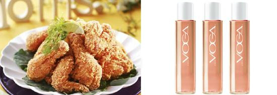 식사 전에 즐기는 식전주로 많이 음미되는 로제 와인, 특히 이탈리아 와인인 '보가'의 로사는 메를로를 주원료로 했으며 딸기, 산딸기, 크렌베리 맛이 매력적인 와인이다. 바삭하게 튀겨진 후라이드 치킨을 먹기 전에 더욱 입맛을 돋우는 역할을 하며, 치킨과 곁들여 먹어도 금상첨화다.