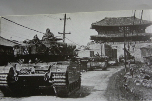 스미스 부대와 만나기 1주일 전에 남대문을 통과하는 인민군의 T-34 탱크