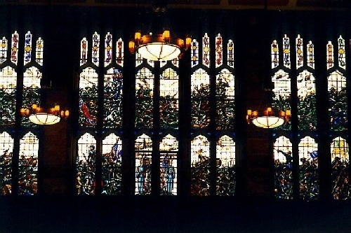 미 육군사관학교의 워싱턴 홀에 가면 미군이 참전한 여러 전투를 기념하기 위해 그려 넣은 '스테인드글라스화'들이 벽에 장식돼 있다.
