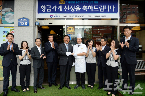 이날 현판식에 참석한 박영봉 부산은행 마케팅본부 부행장은 "자영업 사장님들이 모두 불황을 극복하고 장사가 잘돼 황금알을 낳는 가게가 되는 것이 바람"이라고 말했다.