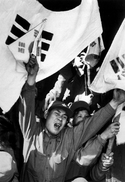 자유의 품으로 돌아온 반공포로들이 환호하고 있다. 이들은 대부분 국군에 입대한다.