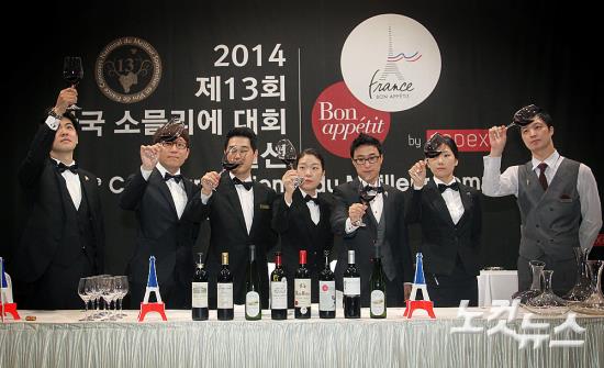8일 오전 서울 임피리얼 팰리스 호텔 두베홀에서 열린 프랑스 농업식품산림부(MAAF)가 주최하고 소펙사 코리아(SOPEXA KOREA)가 주관하는 '제13회 한국 소믈리에 대회 결선' 포토행사에서 결선 참가자들이 기념촬영을 갖고 있다.