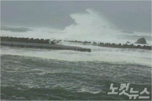 또 서귀포시 안덕면 화순항에 대피해 있던 해상가두리 양식시설이 강한 파도로 떠밀려가 60만 마리 정도의 돌돔과 참돔이 유실됐습니다.