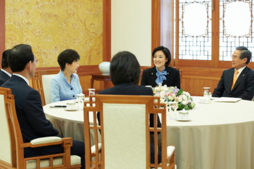 박근혜 대통령이 10일 청와대로 여야 원내지도부를 초청해 1시간 30분 가량의 회동을 통해 국정 주요 현안에 대해 의견을 나눴다. 박 대통령이 여야 원내지도부를 청와대로 초청해 만난 것은 취임 이후 처음이다.
