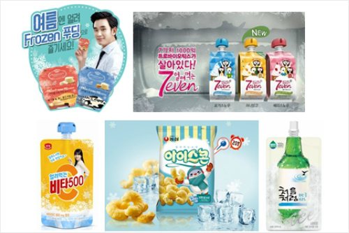 심지어는 '얼려먹는 과자'까지 등장했다. 농심에서 내놓은 '스노우맨'은 냉동실에서 얼리면, 포장에 인쇄된 스노우맨 얼굴에 고글이 등장한다. "냉동실에 20분 얼리면 가장 맛있게 먹을 수 있다"는 게 회사측 설명이다.