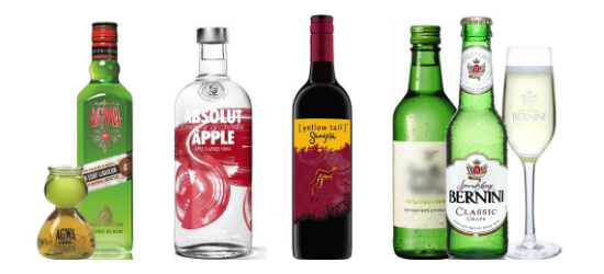아그와, 앱솔루트 애플, 옐로우테일 상그리아, 버니니(왼쪽부터).
