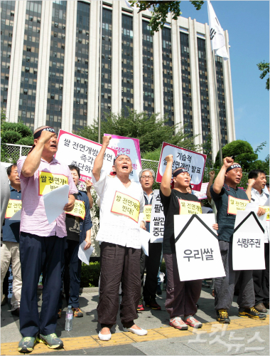 ◆ 송기호> 그런데 문제는 두 가지가 있는 거죠. 하나는 외국 쌀이 국제가격과 환율에 영향을 받는 거고. 그다음에 또 하나의 문제는 정부가 이번에 발표할 그 관세율을 계속 유지할 수 있는가의 문제지. 이를 테면 현재 이미 그 관세율을 낮추기 위한 세계무역기구의 협상이라든지 또 환태평양동반자협정 TPP가 진행되고 있는 상황에서. 이를 테면 우리가 쌀 관세율을 내려야 되는 식으로 이 협상들이 결정되면 우리가 세계무역기구를 탈퇴하겠다, 이것을 예상하기 어려운 거죠. 그래서 이 고관세율이라는 것도 기본적으로 그것을 유지하기는 어렵고 한 번 정해지면 그것을 감축시키기 위한 그런 압력에 직면하는 거죠.