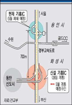 한국도로공사(사장 권도엽)는 "동탄신도시 등 대규모 택지개발에 따른 교통수요에 적극 대처하고 수도권의 교통체증을 완화하기 위해 새 기흥IC 건설에 착공했다"며 "새 기흥IC는 당초 2010년 완공 예정이었으나 동탄 신도시 주민의 편의제공을 위해 3년 앞당겨 임시 개통했다. 기존 기흥IC 700m 남쪽에 설치된 새 기흥IC는 5월 완전 개통된다"고 밝혔다.