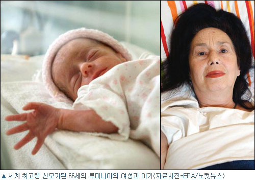 지난 16일(현지시간) 66세의 나이로 출산에 성공, 세계 최고령 산모가 된 루마니아 여성과 아기가 모두 건강한 것으로 알려졌다.